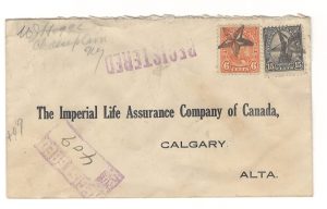 My cover this week is a registered cover sent from Champlain, NY to Calgary, Alberta Canada at the rate of 21 cents in January of 1935. I picked this up because I like the fancy star cancels.
