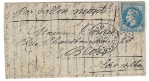 | I have been searching for this week's cover for several years. It's not impossible to find, but it has been very difficult for me to find at a price I could afford. I attended a presentation on the Siege of Paris several years ago and the balloon mail that got out of Paris when the Germans had Paris basically shut off from the rest of the World near the end of the Franco-Prussian war. The presentation is one that stuck with me. It was extremely well done and I found it fascinating. I vaguely remembered the war from my history classes in school. I will not attempt to give a brief synopsis of the event as I am not qualified to do so. I will say if John does the presentation for the library, I believe you should attend it. I have looked for a cover from the event ever since I saw that presentation. They are often offered for sale, but I have never seen one for under $100.00 and I sometimes see them sell for thousands. They are usually at least a few hundred dollars at a minimum. All of which are out of my price range. I got lucky and got this for an incredible bargain on Ebay. I was expecting the seller to not go through on the deal, but last week it arrived in the mail. I found out that all the balloons were named. This one was the 15th balloon flight and was named Le Victor Hugo. It was named after a French Poet who was honored to have a balloon named for him. It was sent from the place garden, and the pilot was Felix Nader. He was alone on the flight and had 440 kilograms of mail (about 200 pounds) and six carrier pigeons. His flight started at 11:45 AM on October 18, 1870, and he traveled 117 kilometers in 5-3/4 hours landing at La Croix-de-Murger near Vauberon at 5:30 PM. There were 67 fights that carried mail from September 23, 1870, through January 28, 1871. Of that 56 of them went through the Paris Post Office. Many of the flights carried additional passengers. Most of them also carried carrier pigeons. A few of them were unmanned. Some balloons were shot down by the Germans. Many flew off course. While others crashed or landed in German controlled areas. They also often faced problems with the weather. To me it's amazing that any got through. I found all this information at our library. We have several great books on the Siege of Paris. |