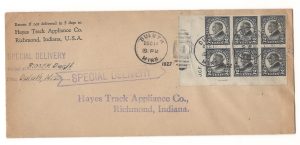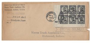 | My covers this month are both special delivery covers with a block of six imperforated #611 Harding stamps. They both have siderographers initials on them. The one with J.H.S. is for John H. Silbert Jr. The one with J.C.F. initials is for James C. Filgate. Siderographers were employees of the BEP, (Bureau of Printing and Engraving). Their job was to create engraved printing plates from a transfer roll. |