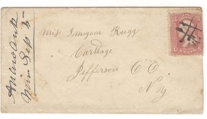 If you shop the internet the term "rare" is used liberally and often on very common items. I am very careful not to state rare, and I am more likely to say scarce or uncommon. That being said, here is a rare cover from Minnesota. It has a scarcity index of 8, which means there are likely less than five in existence. From what I was told it is the only one known. The manuscript cancel is for the town of Anawauk which had a post office from January 21, 1858, to March 16,1887. The only census numbers that I could find were from 1878 when the population was 56. Anawauk was in Le Sueur County. On March 17, 1887, the post office in Cordova assumed postal service for the area. |